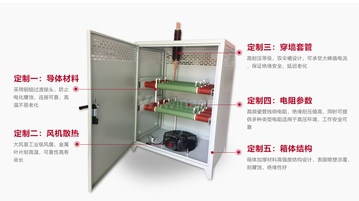 选用时代嘉盈公司自主研发生产的质优大功率高压电阻和各类新型合金电阻材料制造而成,根据高压电阻箱工作在不同电压等级环境的特点设计出不同产品结构和防护等级外罩,具备多种本地和远程控制方式可供选择,并实现数据实时显示,可轻松完成中高压电源和中高压发电机组加载检测。